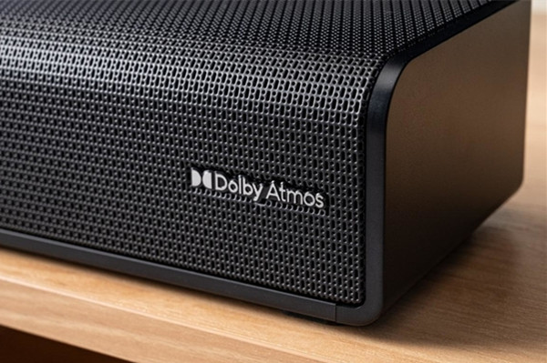 虽然整体看上去,中道Apollo 550是纯黑的一个配色,但凑进看或是在不同灯光角度下,中道Apollo 550的质感和细节还是相当出色的。中道Apollo 550的回音壁部分采用了方圆弧形折角包边设计,整个正面由一整块的金属网罩弯折而成,无论从哪个角度看过去一体性都十分出色,而且圆弧流线的造型也显得圆润优雅,和方正的电视搭配起来还是十分协调的。