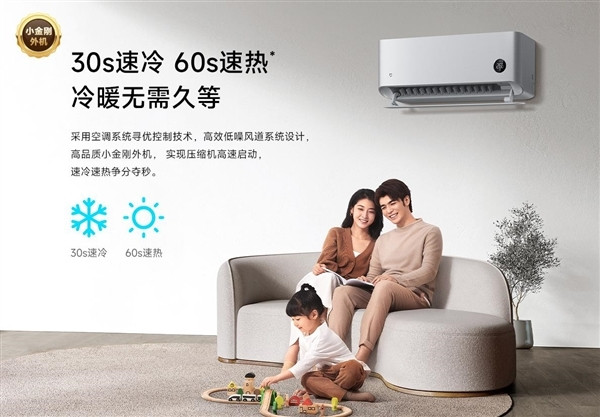 米家空调自然风1.5匹自研“速冷速热”技术:压缩机升频速度十倍提升,数秒之内可达高频,舒适出风无需等待。