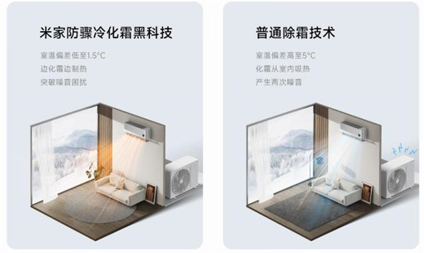 制冷方面米家空调自然风 1.5匹采用防骤冷化霜技术,普通空调化霜时会吸收室内热量,导致室内温度下降。使用防骤冷化霜技术空调在化霜时不从室内吸热,室内温差波动小。