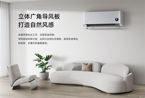 米家空调自然风1.5匹新一级舒适风感升级,立体广角导风板扫风范围大,送风舒适性较普通上下方式导风板有大幅提升。
