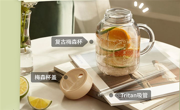 橙厨便携榨汁机CC5800是进口母婴级tritan材料,双层密封有保障,不会出现渗漏的情况,将它直接放包里也没问题。复古梅森杯是食品级加厚AS材料,晶莹剔透看着就美观,搭配tritan吸管,喝果饮超优雅。