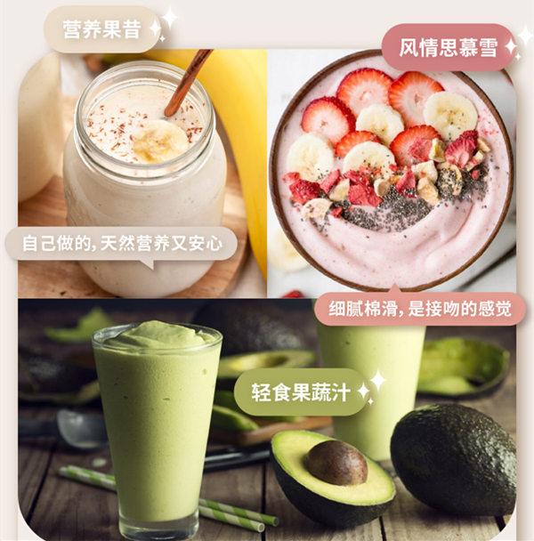 一放、一拧、一扭,一杯细腻绵滑的果昔就呈现眼前。天气炎热就再添上两粒冰块,轻松搞定满杯幸福感。
