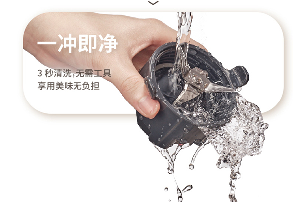 橙厨便携榨汁机CC5800杯子和刀座都是可以独立拆卸下来,每次榨汁后无需太费心思去清洗,及时用清水冲一冲就能干干净净,超级适合懒人。