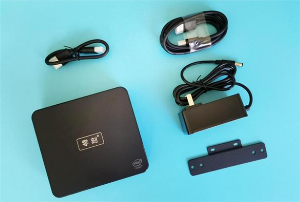 零刻EQ59的配件非常多,除了主机、电源线和说明书之外,还赠有一长一短2根HDMI线材,并且附送了壁挂支架,可悬挂在书架或墙面上,更利于散热不说,还能有效节约桌面空间。