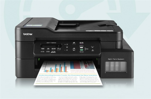 最后给大家推荐这款兄弟的DCP-T725DW喷墨一体机,功能上会更加全面。这款兄弟DCP-T725DW一体机最大的特点就是为用户搭载了自动双面打印功能,在打印双面文档时会更加便捷,在打印的过程中能够真正解放双手。不仅如此,这款兄弟DCP-T725DW喷墨一体机还为用户搭载了20页的自动输稿器,以方便用户进行大批量的扫描或者复印任务,这个功能在家用打印机中并不多见,可见兄弟DCP-T725DW喷墨一体机的用心之处。而在印量方面,单套墨水黑色可以打印7500页,而彩色可以打印5000页,完全可以满足日常的使用需求。