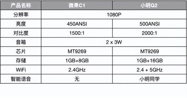 现在越来越多的家庭选择使用投影仪,而且1000元左右的小明Q2和微果C1微型投影仪受到很多朋友的喜欢,那这两款投影仪对比,有哪些区别呢?使用起来到底谁更好呢?下面就来和小编一起来看看小明Q2vs微果C1深度对比评测吧!