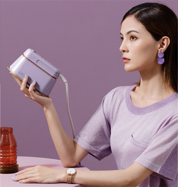 这款跟传统的熨斗不太一样,它的颜值真的太在线了,体积小巧不说,像巴掌的大小,手柄还可以180°旋转,平时可以很好的收纳,出差旅行也可以随便的放在行李箱一角,把它单独摆在家里也是非常好看的。