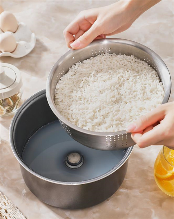 选择煮沥米饭多余的水会留下底座,煮饭的米汤过滤到饭煲内,对于肠胃不好的朋友来说,可以喝点米汤,也是非常营养的,而且很养胃!米汤颜色看起来很清亮,不会像小时候大锅煮饭那么浓稠,但米香还是很浓郁的。