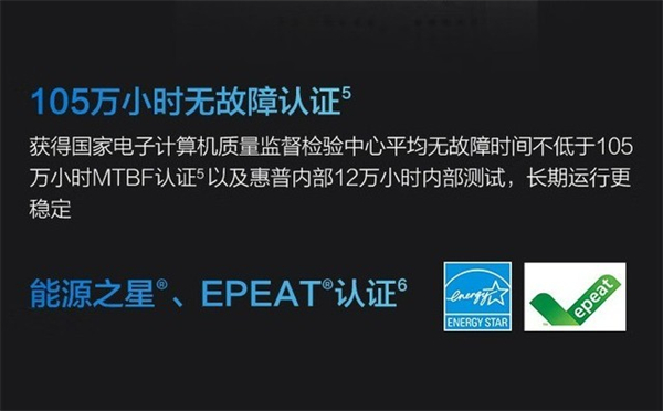 测试之前先简单介绍一下惠普战99商用台式机。这是一款搭载了12代酷睿处理器+RTX独显的新品,主打高性能和系统稳定。之所以选择它,是因为它有几项殊荣非常具有代表性。它通过了105万小时MTBF认证,同时通过了惠普12万小时内部测试,而且还获得了能源之星与EPEAT认证。单纯从以上认证来看,这是一台非常可靠的商用产品。