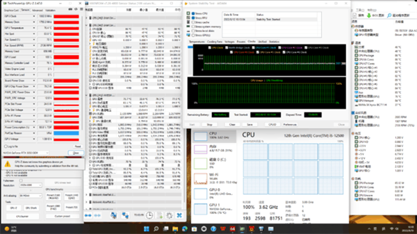 经过72小时,CPU全核频率维持在3.6GHz左右,功耗维持在65W左右,温度维持在86°左右;GPU的核心频率保持为1882MHz,显存频率保持为1750MHz,功耗维持在110W左右,温度维持在76°左右。