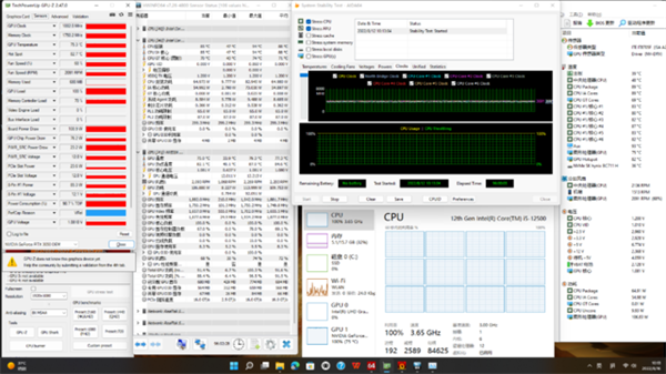 经过96小时,CPU全核频率维持在3.6GHz左右,功耗维持在65W左右,温度维持在89°左右;GPU的核心频率保持为1882MHz,显存频率保持为1750MHz,功耗维持在110W左右,温度维持在75°左右。