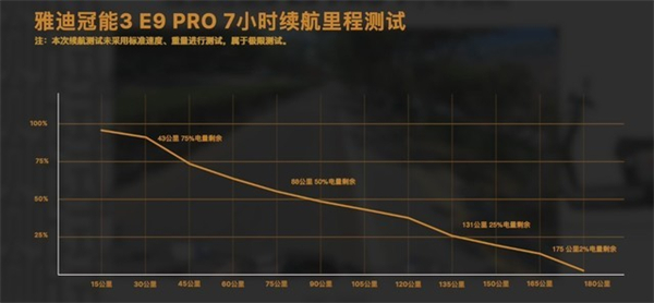 经过近7小时的测试,雅迪冠能3 E9 PRO的实际续航里程为175公里,还是远远超出预期的。
