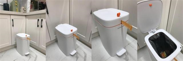 在打包垃圾的方式上,和感应垃圾桶一样采用封闭一拉自动打包方式。不必打开桶盖,不用双手触碰,直接将垃圾袋封口处的抽绳一拉自动打包垃圾,再按开桶盖提出垃圾即可。大部分人家的卫生间面积都比较小,这款方形垃圾桶就不会占据太大空间,放在卫生间很合适。