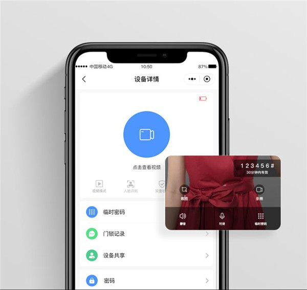 当访客按下门铃的时候,用户的微信就会立刻收到响铃或震动的弹窗消息强提醒,效果和微信视频通过来电类似,能够让用户真正做到不错过访客信息。这一点我认为是智能锁用户体验方面的一次重大革新,也让产品成为了业内首款支持微信强提醒功能的产品。而且,通过小程序,用户还可以实时查看视频,目前来说,这个功能是凯迪仕独占的。