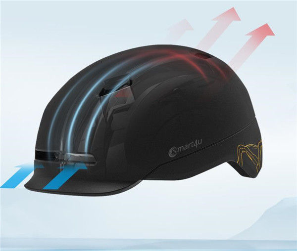 Smart4u城市通勤智能闪盔SH50采用PC和高密度进口的EPS材料,不仅抗撞击性能强,而且头盔重量轻,仅重380g,且通过国标、欧标、美标等多项国际安全认证。