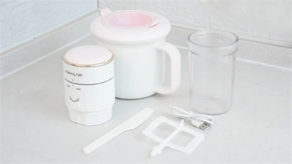 包装中除了主机之外还附送有非常丰富的配件,冰桶、防尘盖、榨汁杯、搅拌杆、刮刀、Type C充电线和使用说明书。