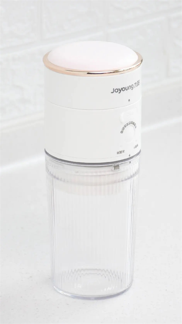 考虑到机身内置锂电池,无需连接电源使用,户外野餐的时候也可以带着它。搭配榨汁杯后机身高度是21.6公分,直径为8.2公分,和普通保温杯差不多大小,可以放在车上或者装到包里。