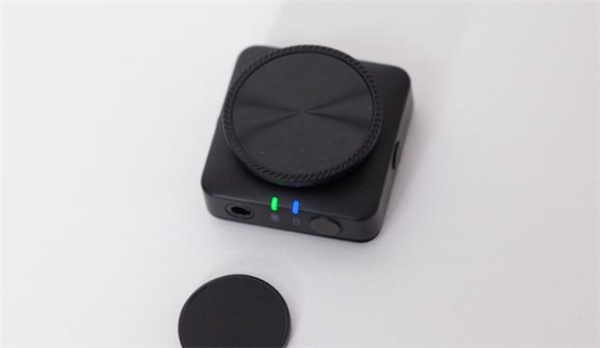 接收器底部,是无线充电、数据传输用的触点。除了放入充电盒充电外,原厂还附送了充电线,可实现边用边冲。发射器设计上,除了夹子外,原厂配有一个磁铁,可以直接透过衣服进行吸附,固定使用很是方便。发射器一侧,分别是领夹麦接口、电量指示灯、连接指示灯以及麦克风。另配有充电及数据传输触点以及降噪按钮。