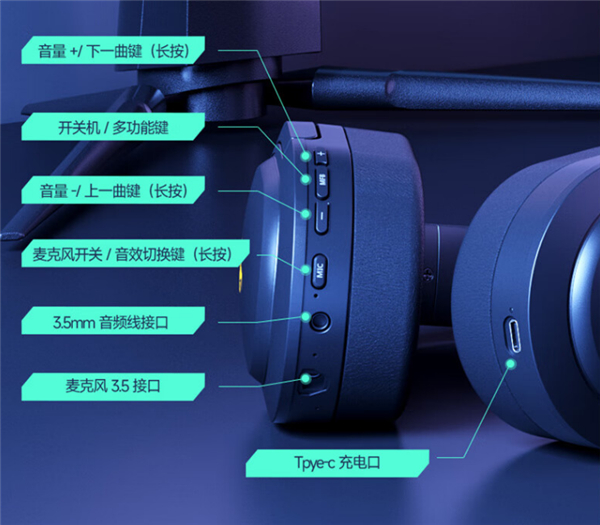 硕美科雷霆狂蜂G710游戏耳机使用了大尺寸耳罩,能够提供良好的包裹性和舒适度。的麦克风可拆卸,根据场景的不同,我们可以随意拆装。这个麦克风可弯曲,并且还支持了ENC降噪。
