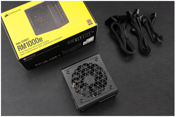 散热方面,海盗船RM1000e配备了120mm直径的来福轴承风扇辅助散热,来福轴承的特点是采用中空结构的循环回路供油系统来降低噪声、提升轴承寿命。同时风扇支持智能停转功能,可在低温和低负载状态下停转风扇,让电源处于被动散热状态,将运行噪声可降至最低。另外,该电源还通过了Cybenetics白金认证,具备低耗电、低噪音、低发热等优点。