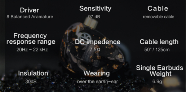 耳机搭载单边8动铁单元、采用楼氏+国产动铁混合配置,双边合计16动铁单元,2颗负责极高频5120Hz~2000Hz频段声音、4颗负责中高频声音,2颗负责低频声音,不用担心低频力量不够,Tingker H16单边给了2颗低频动铁,实测中低频质量和层次非常不错。