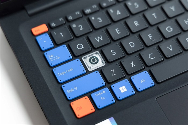 键盘两侧功能键区域还采用了蓝色+橘色撞色设计,不止增加个性美观度,更是发挥了加强功能键观感的实用价值,一举两得。