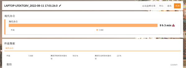不过好处就是,我们通过PCMark 10现代办公续航实测来看,该机续航在9小时以上,这个成绩在标压U的笔记本中算是不错的,能够支撑我们一天在外的使用了,这个要给好评。