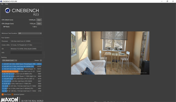 通过Cinebench R23测试来看,其CPU处理器多线程为12540pts,单线程为1722pts。