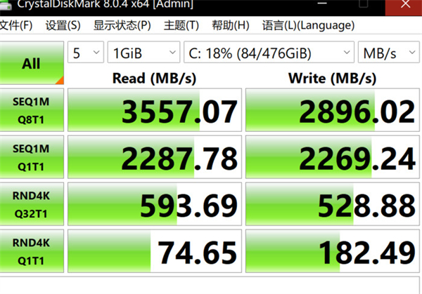 硬盘读取速度超过3500MB/s,同时拥有不错的写入速度,可达2800MB/s以上。