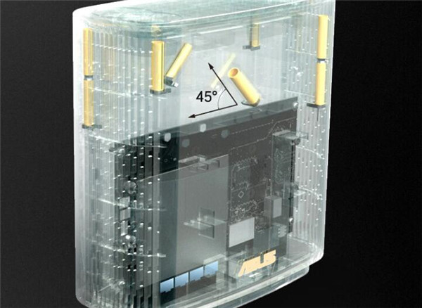 机身侧面竖状格栅不只是装饰作用,通过开孔结构为路由器进行散热。