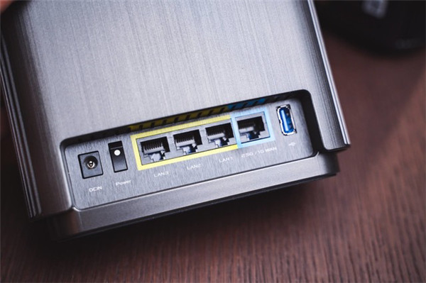 除了电源接口、开关之外,三个LAN口皆支持1000Mbps,WAN口支持2.5G,最右边还预留了一个USB 3.2 接口。