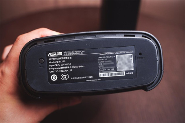 仔细观察产品表面材质会有一定的拉丝效果,在光线较好的情况下机身会呈现出银灰色的外观,在产品底部位置有明显的ASUS字样,其下方还设计了一个可以通过颜色显示网络状态的RGB LED指示灯。