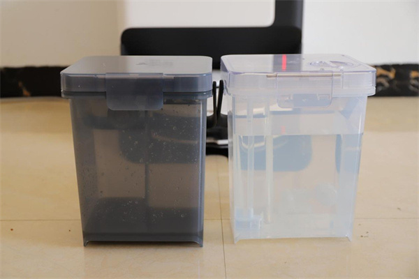 下面我们看看石头G10 Plus在完成扫拖地工作之后的拖布清洗前后效果对比: