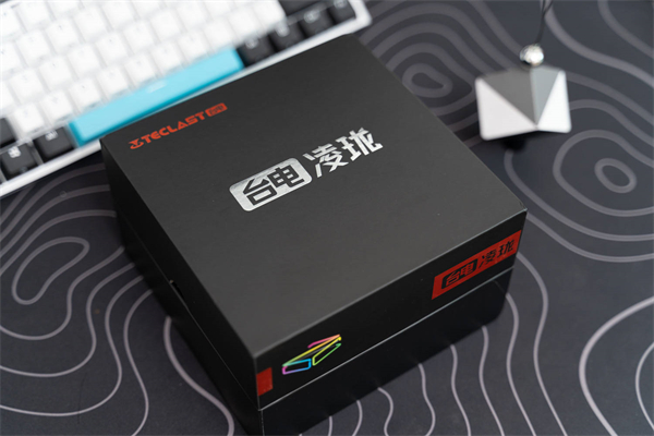 台电凌珑的外包装我个人觉得是比较用心的,整体上看分成了两层,整体以黑色为主,上面有TECLAST台电的logo,中间是台电凌珑,侧面还有彩色的光绘线图和红色的台电凌珑logo。