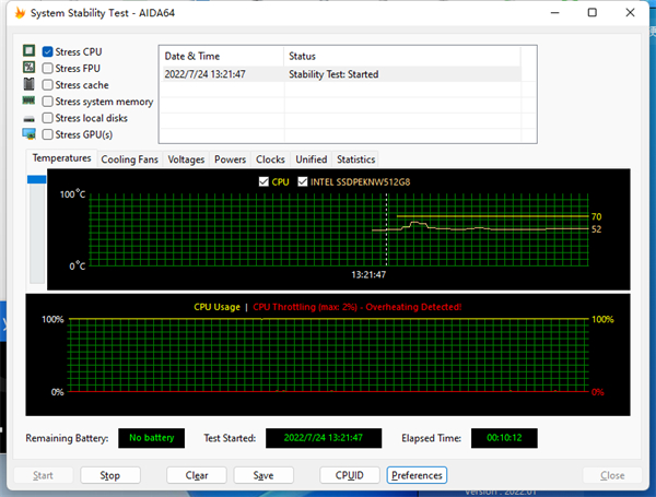 小小机器,虽然功耗低但是散热的表现如何也是值得关注的,单烤CPU10分钟,温度基本保持在70℃,非常稳定的一条直线,70℃其实不高,最主要的是噪音控制很不错,没有出现特别大声的风噪声,放在桌上是基本听不见的。