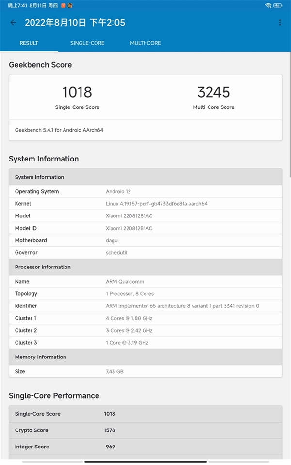 骁龙870在Geekbench 5中的单核分数为1018.多核分数3245.