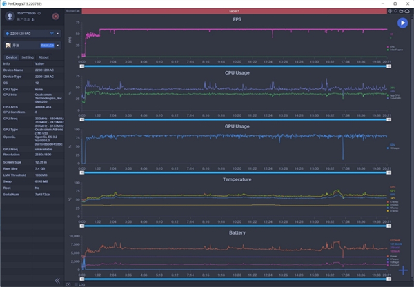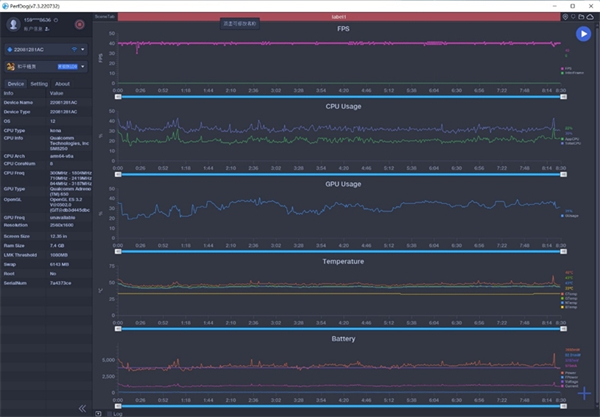 《和平精英》我们玩了10分钟,帧率稳定在40FPS,波动极小。这款游戏对于骁龙870来说,并不构成多少压力。