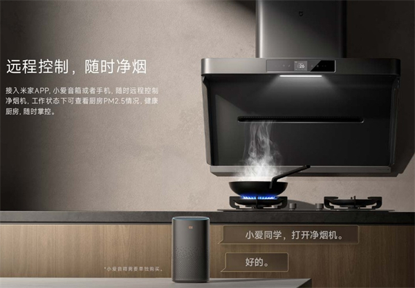 支持接入米家APP、小爱音箱或者手机,就可随时远程控制净烟机,即便在工作状态也可以查看厨房PM2.5情况。不受时间和地理位置的限制,自由操作与掌控我们的厨房。省心又省力地保证我们厨房的空气清新。