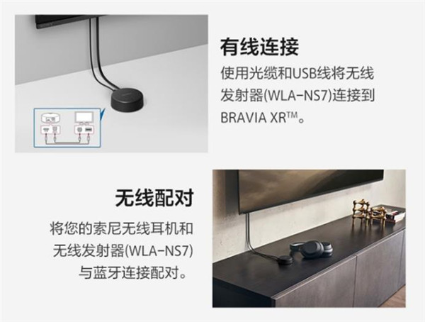 日常如果你是索尼内置XR芯片的电视,那么NS7搭配WLA-NS会发挥100%的实力。XR认知芯片是索尼X1芯片后续的大招,是业界首款具有认知智能的电视芯片,也是业界首款可以同时处理画质和音质的芯片。用光纤连接电视和蓝牙信号发射器,就可以在电视菜单设置中开启"3D环绕声",索尼XR电视通过计算获取使用者的位置,从而让用户在使用NS7的时候出于声场中心位置。