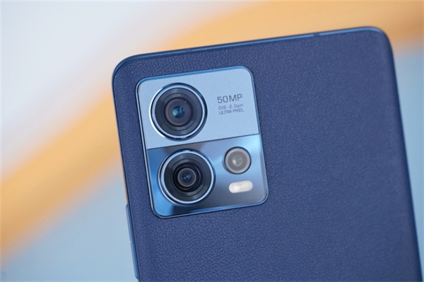 我们快科技收到的moto S30 Pro为春江蓝配色,手机背面采用素皮材质, 摸上去比较顺滑,没有那么的突兀。