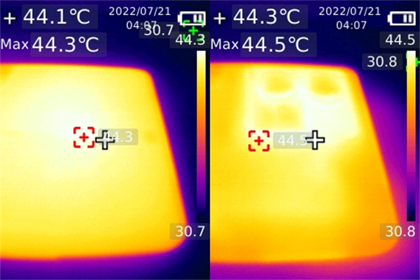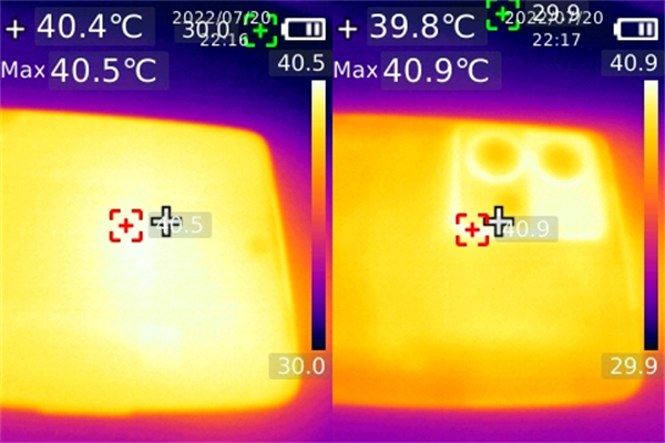 经过温度测试,moto S30 Pro正面最高温度40.5摄氏度,背面最高温度40.9摄氏度。