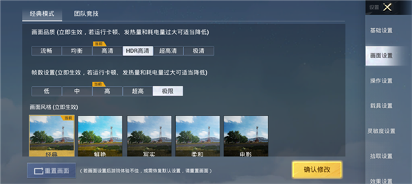 在进行《和平精英》手游测试时,由于游戏尚未适配高帧率,所以我们只能开启60帧+HDR高清画质进行测试。