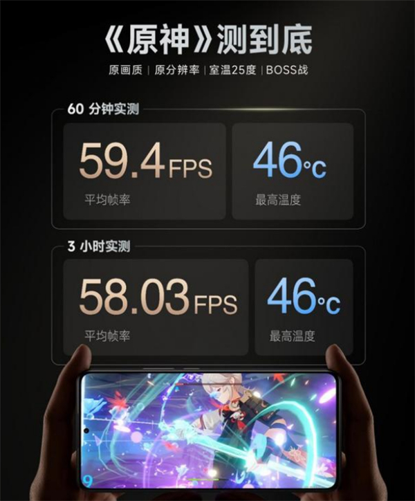 红米K50至尊版搭载的是高通骁龙8+Gen1处理器,跑分成绩达到112万分,媲美部分的电竞手机,而且带来更极致的游戏体验,红米官方在性能的优化、调校方面更放得开,不降分辨率、画质,也不锁帧,不过可能会带来更大的功耗,当然,红米K50至尊版也加入了大面积散热材料,但能不能压得住,要期待后续的体验。从官方的数据来看,连续3个小时的《原神》,平均帧率为58.3FPS,最高温度为46℃,这个帧率和温度表现还是很出色的。
