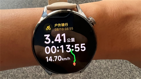 在运动结束后直接弹出当前运动的信息,笔者选择了户外骑行,给出的轨迹还是非常准确的,不过因为手表并不止显示图形地图,如果用户需要查看更详细的地图轨,还是需要配合手机APP。