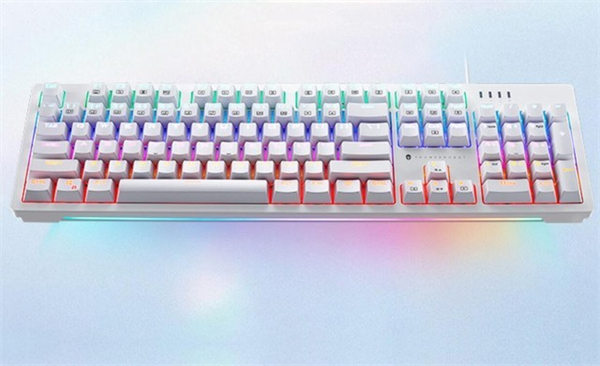 另一款是来自雷神的KG3104R 琉璃幻彩机械键盘,自带RGB灯条霓虹混彩背光有很高的颜值,104键适合不同环境使用,白色红轴也有很好的手感,119元售价搭配价格下方10元优惠券可以做到109元好价到手。