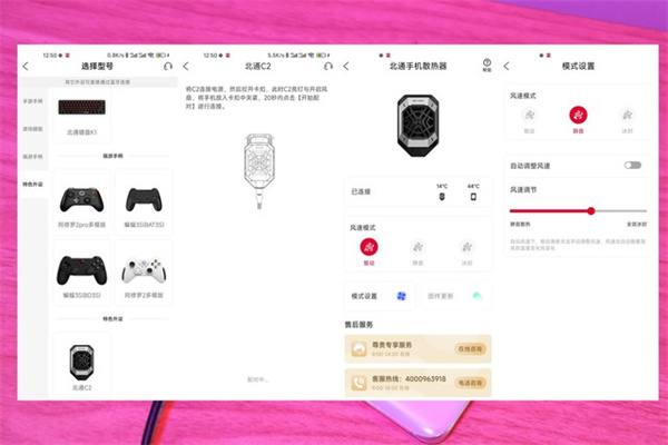 作为一家专业做游戏外设的公司,当然少不了手机APP智能调节,我们可以通过下载北通游戏厅APP来进行连接控制千机寒手机散热器。