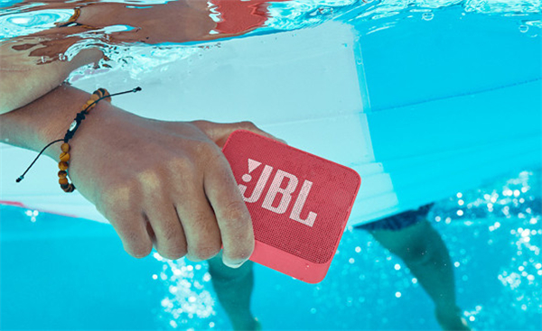 在户外使用音箱的话,对音箱的防护性能要求非常高。JBLGOESSENTIAL音乐金砖青春版此次配置了IPX7级别的防水保护,即使音箱在1米深的水中浸泡30分钟依然可以正常使用。IPX7对于音箱的保护来说非常优秀,在户外可以放心大胆地使用它。
