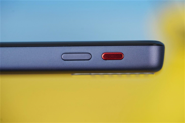 有道词典笔X5侧面有两枚实体按键,左边的按钮可以长按呼出AI语音助手,轻按返回上一层页面;右侧的红色按钮轻按亮屏/锁屏,长按执行关机操作。