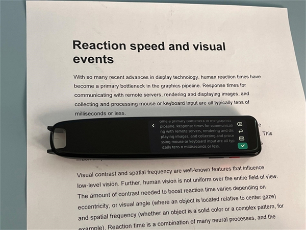 我们找来一篇科技相关的英文版长篇背景介绍体验。有道词典笔X5能做到无压力识别长篇文章,识别率还是非常高的,识别出的排版也非常自然,如果出现部分单词识别错误,也支持手动修改。