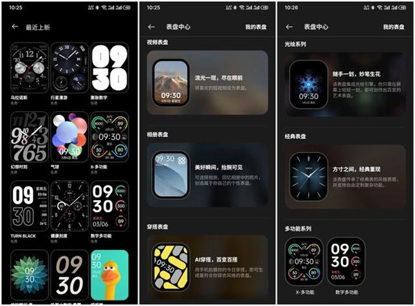 Omoji表盘可以与手机Omoji互通,展示个性虚拟形象。视频表盘则支持将MP4、GIF格式设置为表盘,可以抬腕亮屏单击播放,也可以旋转表冠逐帧播放。